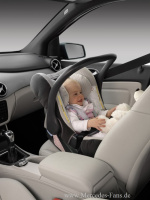 Kleine Passagiere, große Sicherheit: Mit der neuen B-Klasse ist ein besonders familienfreundliches Modell von Mercedes-Benz gestartet. Das umfangreiche Kindersitzangebot für jede Alters- bzw. Gewichtsgruppe ist typisch für den Sicherheits-standard bei Mercedes-Benz. Es umfasst serienmäßig ISOFIX-Befestigungen sowie auf Wunsch Fondsitze mit integrierten Kindersitzen (IKS), die automatische Kindersitz-Erkennung (AKSE) im Beifahrersitz und das umfangreiche Zubehör-Sortiment an Mercedes-geprüften Kinderrückhaltesystemen: die Babyschale BABY-SAFE plus, den Sitz DUO plus sowie die Sitzerhöhung KIDFIX mit verstellbarer Rückenlehne.