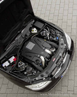 Das hochmoderne 3,5-Liter-V6-Aggregat im S 350 BlueEFFICIENCY und S 350 4MATIC BlueEFFICIENCY ist als Saugmotor konzipiert. Dank des modularen Konzepts eignet es sich jedoch auch für den künftigen Einsatz eines Turboladers. Die markanteste Veränderung zum Vorgängertriebwerk ist der von 90 Grad auf 60 Grad verkleinerte V-Winkel zwischen den Zylinderbänken. Dadurch konnte die Ausgleichswelle gegen Schwingungen erster Ordnung entfallen. Als Ergebnis registriert der Fahrer ein exzellentes Komfortniveau. Zu den konstruktiven ighlights des Triebwerks zählt ein komplett neues Luft- und Abgassystem in Verbindung mit einem schaltbaren Resonanzsaugrohr und optimierten Ein- und Ausströmverhältnissen. Ergebnis: Bei gleichem Hubraum stieg die Leistung gegenüber dem Vorgänger mit 200 kW (272 PS) um 12,5 Prozent auf 225 kW (306 PS), während das maximale Drehmoment um 5,7 Prozent auf 370 Newtonmeter (Vorgänger: 350 Nm) zulegte und jetzt über einen breiten Drehzahlbereich von 3500 und 5250/min abrufbar ist.