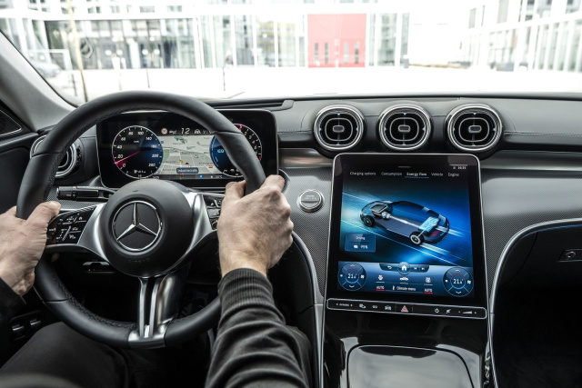 Die elektrische Reichweite von jeweils rund 100 Kilometern soll dafür sorgen, dass die meisten Fahrten im Alltag ohne Zutun des Verbrenners erledigt werden können. Erst wenn der Akku mit seiner Kapazität von 25,4 kWh leer ist oder das Fahrprogramm es erfordert, springt der zwei Liter große Vierzylinder vom Typ M 254 ein und sorgt so für die bekannten Langstreckenqualitäten bei Limousine und Kombi der C-Klasse. Rein elektrisch sind die Modelle bis zu 140 km/h schnell. Das im Boden verbaute Batteriepaket des Schwaben lässt sich mit dem optionalen 55-kW-Lader in 30 Minuten wieder aufladen. Serienmäßig an Bord ist ein 11-kW-Lader für dreiphasiges Laden.