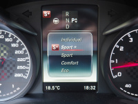 Machen wir es kurz: Wer sportliches Fahren liebt, kommt mit dem C 450 AMG im Modus „Sport+“ allerbestens klar. Der Bi-Turbo hängt dann gierig am Gas, die Nadel des Drehzahlmessers schießt blitzschnell in Richtung roter Bereich, das 7G-TRONIC PLUS-Automatikgetriebe schaltet flugs runter und dreht die Gänge höher aus. Der deutlich sportlichere Fahrcharakter mündet jetzt auch in einem spürbar wahrnehmbaren Sound. Übrigens auch beim Anlassen in „Sport+“. Stimmt, im Heck hängt ja eine Sportauspuffanlage – jetzt macht sie sich auch akustisch bemerkbar. In den Modi „Sport“ und Sport+“ wird auch die Lenkung eine Spur direkter. Schon eine beachtliche Wesensänderung, die der C 450 4MATIC AMG dann erkennen lässt. Und das alles auf Knopfdruck. Einst musste für solche spürbaren Änderungen der Wagen komplett umgebaut werden. Heute hat es jeder Pilot selbst in der Hand, wie er seinen C 450 fahren will.