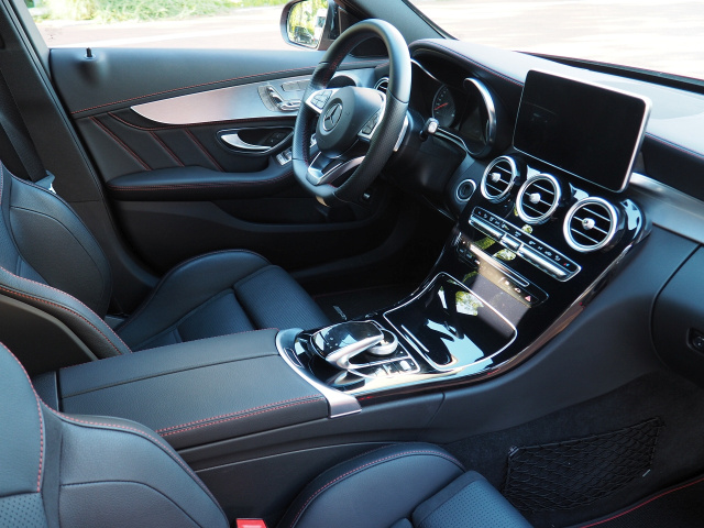 Der Blick aufs Auto sagt: „Aber hallo!“ Das schaut fraglos sportlich aus. Die optionalen 19“-Felgen springen sofort ins Auge. Und das Rot steht ihm gut. Allerdings kostet das designo hyazinthrot metallic rund 1.357 Euro Aufpreis. Der Blick auf die technischen Daten ist ebenfalls appetitanregend. 367 PS aus einem Bi-Turbo-Sechszylinder klingen sehr ordentlich, auch wenn es kaum mehr als 34 PS sind, um die der C 400 4MATIC damit übertrumpft wird. Der C 63 ist da mit 476 PS deutlich außerhalb der Schlagdistanz. Zumindest auf dem Papier. Gut, das gilt es nun auszufahren.