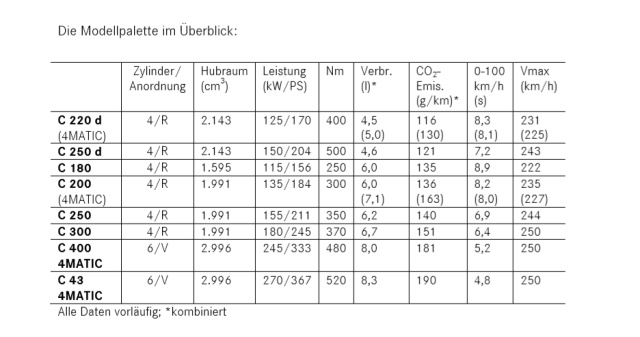 Kraftvolle und effiziente Benzin- und Dieselmotoren mit ECO Start-Stopp-Funktion und ein umfangreiches 4MATIC Angebot sorgen ganzjährig für sportliche Fahrleistungen und Fahrspaß. Alle erfüllen die Euro-6-Abgasnorm.Für das Cabrio stehen sechs Benzinmotoren zur Verfügung. Die Leistungsbandbreite reicht vom 1,6-Liter-Vierzylinder im C 180 mit 115 kW (156 PS) bis zum 3,0-Liter-Sechszylinder im Mercedes-AMG C 43 4MATIC Cabriolet (270 kW/367 PS). Der C 200 ist optional mit Allradantrieb 4MATIC zu haben.Die Dieselmodelle sind mit einem Vierzylinder mit 125 kW (170 PS) im C 220 d oder 150 kW (204 PS) im C 250 d ausgerüstet und verfügen über die umweltfreundliche SCR-Technologie (Selective Catalytic Reduction) zur Abgasnachbehandlung. 4MATIC kann für den C 220 d bestellt werden.Das neue Automatikgetriebe 9G-TRONIC ist für alle Motorisierungen verfügbar.