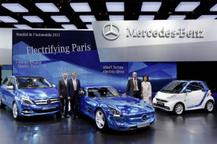 Lokal emissionsfreie Elektrofahrzeuge sind ein wesentlicher Bestandteil der Mercedes-Benz Strategie für nachhaltige Mobilität. Auf dem Pariser Salon haben zwei weitere Modelle mit electric drive ihre Weltpremiere: Der Concept B-Class Electric Drive, der ab 2014 dieses breite Produktportfolio ergänzen wird, und das schnellste elektrisch angetriebene Serien-Fahrzeug der Welt, der SLS AMG Coupé Electric Drive. Wie weit der Stuttgarter Premium-Hersteller in diesem Bereich bereits ist, belegen die Elektro-Pkw, die bereits heute unter Serienbedingungen hergestellt werden und sich durch volle Alltagstauglichkeit auszeichnen. Dazu gehören die B-Klasse F-CELL, der Transporter Vito E-CELL und der smart fortwo electric drive.