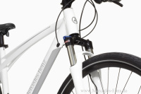 mit 27 Gängen. Ausgestattet ist es darüber hinaus mit einer blockierbaren Suntour NRX-D LO Federgabel mit 80 mm Federweg, hydraulischen Shimano-Scheibenbremsen, Ergon-Lenkergriffen, einem winkelverstellbaren Vorbau sowie dem hochwertigen Phorm Sattel für viel Komfort auch auf längeren Touren. Die Farbkombination weiß/silber unterstreicht den sportlichen Charakter dieses Fahrradmodells. Das Mercedes-Benz Fitnessbike 29 ist in drei Rahmengrößen (49/52/55 cm) erhältlich, wiegt ca. 14 kg und kostet 1.199 Euro. Alle Mercedes-Benz Fitnessbikes ab Modelljahr 2007 können mit dem Aluminium-Gepäckträger (ca. 7 kg Nutzlast) nachgerüstet werden. Dieser lässt sich ganz einfach werkzeuglos montieren. Der Preis: 59,90 Euro.