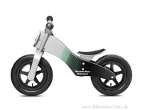 Alternativ können Kids ab ca. zwei Jahren ihre ersten Zweiraderfahrungen mit dem Laufrad aus Holz sammeln, das in Mercedes-Benz Motorsport Optik in den Farben silber, petronasgrün und schwarz bedruckt ist. Die 12-Räder sind auf Kunststofffelgen montiert und die Sitzhöhe ist von 32 bis 36 cm verstellbar. Der Preis beträgt 129,90 Euro.