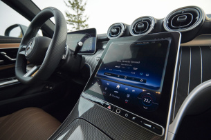 Soweit die Theorie des Datenspiels. Schauen wir uns einmal die Realität an. Beim Fahrtantritt war die Batterie zu 84 Prozent gefüllt, was für eine elektrische Reichweite von 89 Kilometern reicht. Wir haben fast während der gesamten Fahrt den Hybrid-Fahrmodus aktiviert und so dem System im Zusammenspiel mit den Navigationsdaten die Wahl des geeigneten Antriebs überlassen. Als wir nach 2 Stunden und 24 Minuten bei unserem Ziel ankamen, befanden sich noch 33 Prozent Energie in den Akkus, was für 34 elektrische Kilometer gereicht hätte. Immerhin waren wir sowohl auf Autobahnen als auch überwiegend auf Landstraßen unterwegs. Und das bisweilen auch mal flott. Der Bordcomputer meldete einen durchschnittlichen Benzinverbrauch von 6,7 l/100 km, elektrisch waren es 4,5 kWh/100 km und wir zu 34 Prozent der Fahrtstrecke rein elektrisch unterwegs. Geladen wird mit maximal 11 kW. Allerdings ist beim CLE 300e Coupé aus Platzgründen kein DC-Laden möglich, was bei einem Auto dieser Preisklasse eigentlich nicht sein sollte.