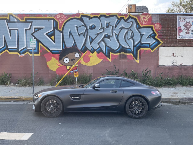 Durch die jüngste Leistungsspritze leistet der doppelt aufgeladene Achtzylinder unter der endlos langen Motorhaube des Affalterbachers stattliche 390 kW / 530 PS und ein maximales Drehmoment von 670 Nm. Was das auf der Straße bedeutet, kann man an der kalifornischen Küste allein nächtens einmal testen – da kommt einem der Stealth Mode gerade recht – möchte man meinen. Denn bereits an der am/pm-Tankstelle zücken die ersten Fans die Kamera und lichten den 4,54 Meter langen Boliden zahlreich ab. Okay, dass der AMG GT hier in den USA gut ankommt, mag kaum überraschen, aber so langsam sollte man den fast 1,7 Tonnen schweren 911er-Fighter doch kennen. Der fällt auf – und das wohl mehr denn je durch seine Stealth Edition, die scheinbar genau diesen Grund haben sollte. Ganz nebenbei passt der mattschwarze Look für den Boliden prächtig. Zu schaffen machen ihm allein die zerborstenen Straßen und Highways zwischen der finanzstarken Bay-Area und dem Großraum Los Angeles, wo Black Beauty allerdings im Minutentakt neue Freunde findet.