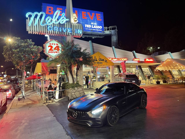 Der Kontakt zu Police oder State Trooper bleibt einem an diesem späten Abend erspart und auch als es über den Highway 101 Richtung Süden etwas flotter als tagsüber nach Hollywood geht, sind zwar Officer unterwegs, doch die donnern locker im dreistellige Meilenbereich vorbei. Wenn man nur wollte….. der AMG GT Stealth schafft 195 mph – umgerechnet 310 km/h Spitze. Da sollte sich lieber kein Officer in seinem Dodge Charger drauf einlassen. Doch man sich selbst eben auch nicht auf ihn. Besser ist das in den USA.