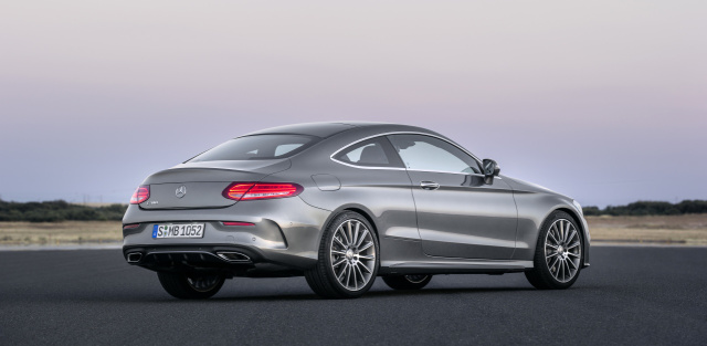 Den augenscheinlich sportlich Charakter des Mercedes-Benz C-Klasse Coupé prägen die markante Frontpartie mit Diamantgrill und langer Motorhaube, rahmenlose Türen mit freistehendne Außenspiegeln und das kraftvoll gezeichnete Heck. 17-Zoll-Räder und eine Tieferlegung um 15 mm betonen den sportlichen Auftritt der neuen C-Klasse-Coupé-Generation.