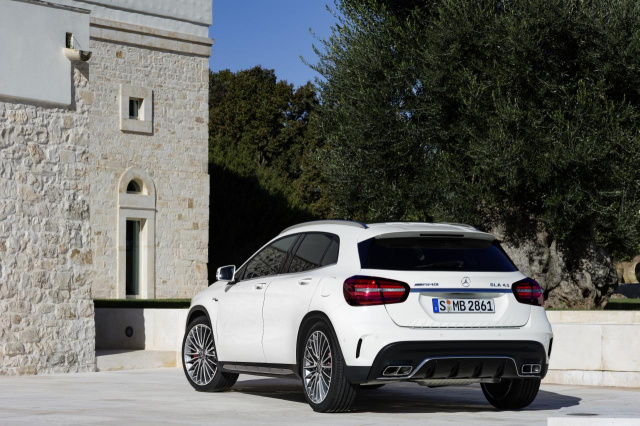 Geänderte Stoßfänger, zusätzliche Leichtmetallräder und die neue, attraktive Farbe „Canyonbeige“ kennzeichnen den Jahrgang 2017 auf den ersten Blick. Damit unterstreicht der GLA optisch noch stärker als bisher seine SUV-Gene. Die bisherigen optionalen Bi-Xenon-Scheinwerfer weichen LED-Scheinwerfern, die sich durch tageslichtähnliche Farbtemperatur auszeichnen.