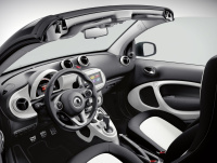 Das smart fortwo cabrio BRABUS edition basiert auf dem 66 kW (90 PS) starken cabrio mit twinamic 6-Gang Doppelkupplungsgetriebe, Ausstattungslinie passion und dem neuen BRABUS Sport-Paket (Details siehe nächster Abschnitt). Ebenfalls serienmäßig an Bord sind Sitzheizung für Fahrer und Beifahrer, Ablage-Paket, Cool & Media-Paket, LED & Sensor-Paket sowie Komfort-Paket und größerer 35-Liter-Tank. Das smart fortwo cabrio BRABUS edition kann ab März zu Preisen ab 29.950 Euro1 bestellt werden und kommt im Mai zu den Händlern.