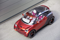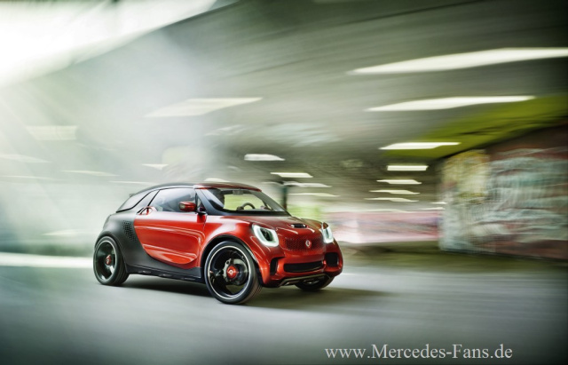 Weltpremiere hat der smart forstars auf der Mondial de lAutomobile 2012 in der Modestadt Paris (29. September bis 14. Oktober 2012). Für smart ist die Messe in der französischen Hauptstadt ein Heimspiel, denn die Produktionsstätte der Marke befindet sich im lothringischen Hambach. Eine Referenz an den Ort der Weltpremiere ist auch die Farbgebung des ausdrucksstarken Coupés: Es ist im extravaganten Farbton Alubeam rouge lackiert, der in einem reizvollen Kontrast zur tridion-Sicherheitszelle steht, deren matter Titanfarbton metallisch wirkt. Und dank der Verwendung des 60 kW starken Permanentmagnetmotors aus dem neuen smart BRABUS electric drive lässt sich der smart forstars emissionsfrei agil und besonders spritzig fahren.