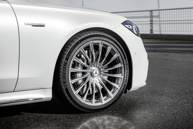 Wer so viel Hightech mit sich herumfährt und diese auch teuer bezahlt, will das auch zeigen. Allerdings ist bei S-Klassen-Kunden der Grad zwischen Kenner-Details und plumper Protzoptik sehr schmal. Deswegen führen die AMG-Designer beim S 63 E Performance ihre Klinge mit feiner Hand. Den Kühlergrill zieren vertikale Lamellen und ein auffälliger zentraler Stern, der auf der Motorhaube durch das AMG-Wappen ersetzt wird. Uns gefallen die 21 Zoll großen geschmiedeten Felgen. Ein bisschen Bling-Bling darf es dann schon sein.