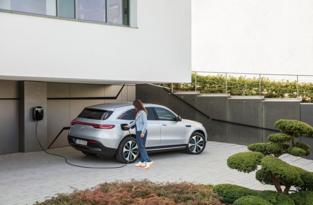 Der EQC verfügt serienmäßig über einen wassergekühlten On-Board-Lader (OBL) mit einer Leistung von 7,4 kW und ist damit für das Wechselstrom- (AC-) Laden zu Hause und an öffentlichen Ladestationen vorbereitet. Bis zu drei Mal schneller als an einer Haushaltssteckdose erfolgt das Laden an einer Mercedes-Benz Wallbox. Und noch schneller geht es über Gleichstromladen – beim EQC serienmäßig – zum Beispiel via CCS (Combined Charging Systems) in Europa und den USA sowie CHAdeMO in Japan oder GB/T in China. Abhängig vom SoC (Status of Charge, deutsch: Ladestand) lädt der EQC an einer entsprechenden Ladestation mit einer maximalen Leistung von bis zu 110 kW. Die Ladezeit beträgt dann etwa 40 Minuten von 10 - 80 Prozent SoC (vorläufige Angabe).