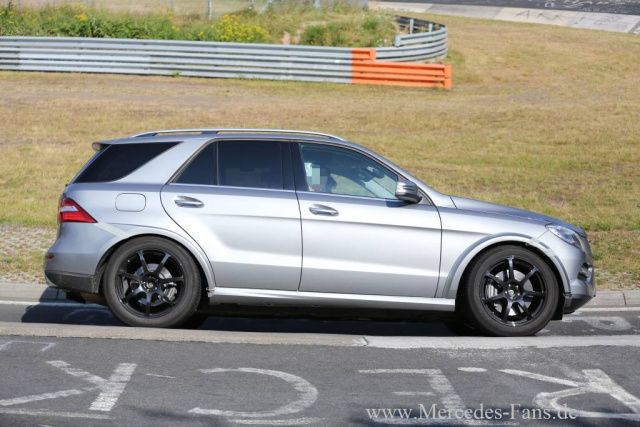 Auch die Vorderachse scheint breiter als beim jetzigen ML zu werden. Der vordere Radkasten wirkt jedenfalls merklich verbreitert.