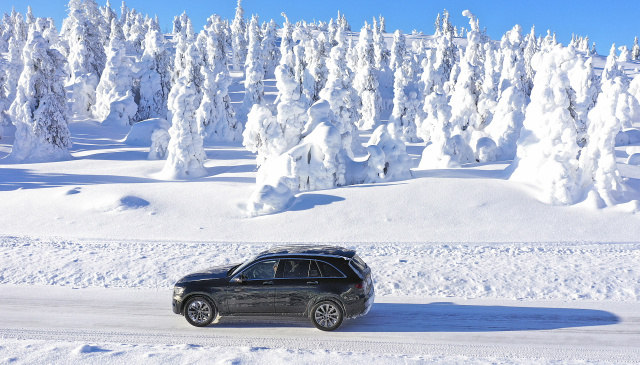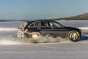 In Deutschland war der Mercedes GLC 220d das bisherige Volumenmodell, woran sich nach der Modellpflege kaum etwas ändern dürfte, da die Fahrleistungen des Basisdiesels stimmen und die Leistung des Vierzylinder-Commonrail-Triebwerks ausreicht. Ein paar Minuten später kann man sich am Steuer des GLC-300-Prototypens selbst vom Reifegrad des Probanden überzeugen. Eine Anfahrschwäche ist tatsächlich kaum zu spüren und der rund 1,9 Tonnen schwere Mercedes GLC 300 hängt beeindruckend gut am Gas, während er auf den rutschigen Eisflächen seine Bahnen zieht. Fahrwerk und Lenkung sind ebenso vorbildlich wie die Regelsysteme, die bei den Testfahrten hier auf den weitläufigen Eisseen Lapplands getrost ausgeschaltet bleiben dürfen, wenn es dynamisch mit leicht ausgestelltem Heck in den Grenzbereich geht.