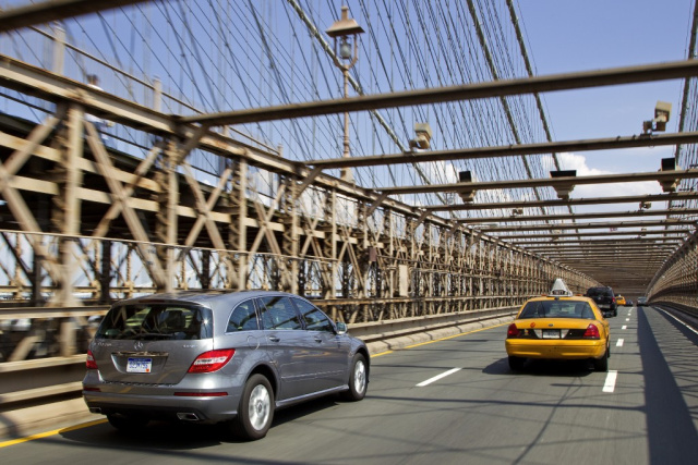 Auf den doch eher mäßigen Strassen rund um die Metropole New York kann die R-Klasse ihre Qualitäten als komfortabler Reisewagen bestens in Szene setzen. Das Fahrwerk bügelt die bisweilen doch überraschend schlechten Straßenoberflächen aus. Wer am Armaturenbrett die Stellung „Komfort“ wählt, schwebt praktisch über den Dingen. Das gilt auch für die Fahrgeräusche, auch hier bietet die R-Klasse überzeugend Oberklasse-Premium-Niveau. Auch die Laufgeräusche unseres Diesel-V6 hielten sich mehr als angenehm im Hintergrund.