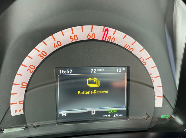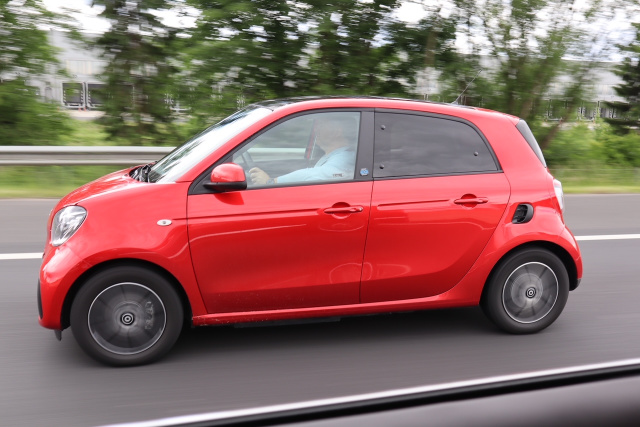 Der nahezu lautlose Elektromotor im Heck lässt einen den schnatternden und rasselnden Verbrenner in keiner Sekunde vermissen. Bei regennassem Wetter geht es nach dem Zwischenstopp aus Stuttgart kommend und zwei Ladepausen in München los. Vollgeladen am Deutschen Museum zeigt der kleine Reichweitencomputer stattliche 180 Kilometer an – mehr als man es erwartet hätte. Es ist feucht, nein nass und so werden Lüftung und Klimatisierung gestartet – der Reichweitenzähler bricht per Knopfdruck auf gerade einmal 126 Kilometer zusammen – ein kurzer Schock, der sich jedoch beim Auffahren auf die Autobahn A94 Richtung Osten schnell nivelliert und wieder ein paar Kilometer mehr anzeigt. Mit seinen 60 kW / 81 PS ist der forfour ed nicht nur flott genug, um im fließenden Verkehr der Innenstadt mitzuschwimmen, sondern auch auf der Autobahn geht es munter voran. Die 160 Nm maximales Drehmoment sind nicht viel für einen kleinen Zwischenspurt und bei der Tachoanzeige von 140 km/h – real rund Tempo 130 – wird ohnehin elektronisch abgeregelt. Für die kleine Elektroknutschkugel, die nur heute einmal auf große Reise geht, reicht das allemal aus.