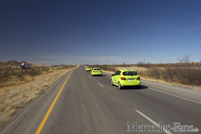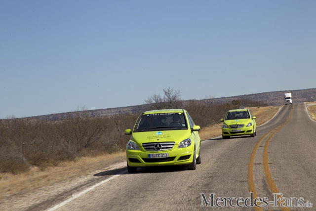 Um deren Alltagstauglichkeit unter Beweis zu stellen, machten sich am 30. Januar drei B-Klasse F-Cell auf den Weg, um einmal um den Globus zu fahren. Von Stuttgart aus führte die erste Etappe nach Portugal, von dort aus ging es über den großen Teich nach Miami und einmal quer durch die USA.