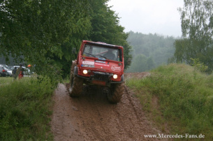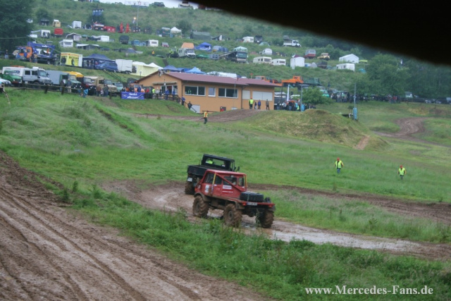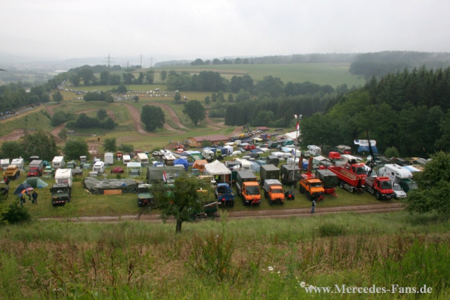 Das Gelände selbst lag in einem kleinen Talkessel, dessen eine Seite die Offroadstrecke bildete und die andere in Ebenen aufgeteilt als Stellplatz-Areal diente. Unter den zahlreichen Teilnehmern kamen einige Unimogfans auch von weiter her auf eigener Achse versteht sich!