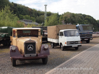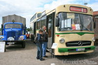 Außerdem hatte die Daimler AG einige historische LKWs und Vans wie den V8-getriebenen Kamera-Viano zu den SCHÖNEN STERNEN entsendet. Ein Hingucker waren zweifelsohne der knallorangene Zetros und das Actros-TAXI, das für viele Gäste ein beliebtes Fotomotiv darstellte. Actros Schulungsleiter Günther Brendel: Das Interesse der Leute hier ist ja wahnsinnig! Alles echte Fans!