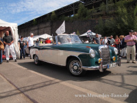 Das gelang auch Daisy und Hugo aus Mechelen, die mit einem ganz speziellen 170 S auf eigener Achse aus Belgien angereist kamen. Sie hatten Ihren Benz vor mehr als 20 Jahren im Hot Rod-Style umgebaut, weil auf den Rod-Treffen immer nur alte Fords und Chevys aufkreuzten. Als Hugo auf der Bühne glaubhaft versicherte, dass er auch noch einige erhaltenswerte 170er und eine originale Pagode habe, da klatschten dann auch die kritischsten Besucher erleichtert mit.