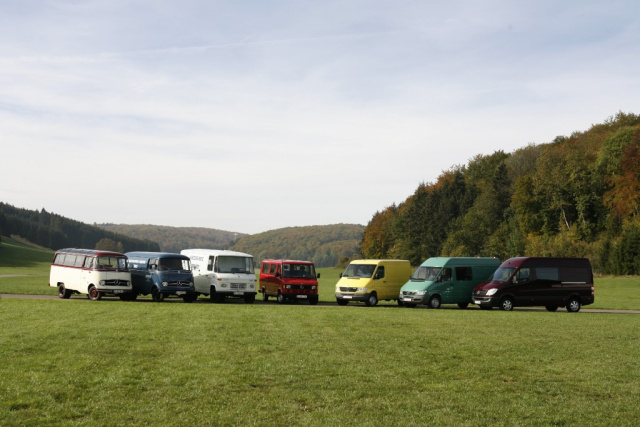 Abgerundet wird der Auftritt der Lieferwagen-Geschichte durch den Mercedes-Benz Sprinter Kastenwagen, der als Rallyefahrzeug bei der diesjährigen "Aicha des Gazelles" unterwegs war.
