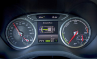 Dank der sogenannten Rekuperation der Energierückgewinnung beim Bremsen kann die Batterie aufgeladen und somit die Reichweite von 200 km erweitert werden. Das kann sowohl manuell geschehen - durch den Tritt auf das Bremspedal oder über als auch automatisch über das radargestützte Distronic, wenn sich die B-Klasse einem vorausfahrenden Fahrzeug nähert. Wer noch mehr Reichweite benötigt kann über die optionale Range-Plus-Taste vor dem Laden der Batterie eine größere Ladekapazität erhalten, welche die Reichweite um bis zu 30 Kilometer erhöht. Auf die Batterie gibt Daimler übrigens ein Zertifikat von 8 Jahren und 100.000 km aus, das die Wartung in diesem Zeitraum und eine Kapazität von allerdings nur 19,6 kWh (Neu: 28 kWh) zusichert.