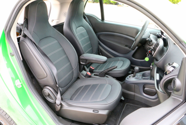 Äußerlich unterscheidet sich der smart electric drive nicht von seinen nicht emissons-freien Brüdern. Im Innern erkennt der Laie den e-smart auch nicht unbedingt auf den ersten Blick. Anstelle des Drehzahlmessers mit der integrierten Uhr links auf dem Armaturenbrett sitzt die Powermeter- und Batteriezustandsanzeige. Dort werden die rekuperierte Energie und die angeforderte elektrische Leistung angezeigt. Das Kombiinstrument wurde auf die electric drive Modelle angepasst und zeigt die spezifischen Funktionen Ladezustand und eco-score-Gesamtwert an.