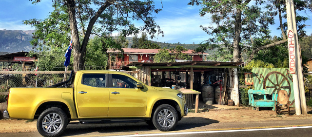 Nun sitze ich im benachbarten Chile – und in der Topausführung ‚Power‘ des X 250d. Im Innern herrscht komfortables, ledriges Mercedes SUV-Ambiente. Das Lenkrad kommt von der C-Klasse. Touchpad-Mittelkonsole, LED-Scheinwerfer, Rückfahrkamera und 8-Zoll Multimedia-Display sind alles vertraute Mercedes- Ausstattungsmerkmale. Hier kommt überhaupt kein Pickup-Gefühl auf. Premium Feeling mit Stern-Prestige im rustikalen Segement des Automarktes.