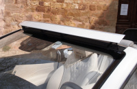 Erste Amtshandlung: Das Öffnen des Verdecks – das geht über einen kleinen Hebel unter der Armlehne oder auch per Schlüssel. Doch nicht nur das Verdeck klappt dann in einer beeindruckenden Falttechnik auf sondern auch die Gepäckraum-Abtrennung klappt dabei automatisch herunter – ausser Gepäckstücke stören. Das Öffnen (und Schließen) funktionieren nicht nur im Stand, sondern auch bis rund 60 km/h und es braucht dafür jeweils nur rund 20 Sekunden!