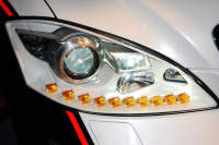 Die Lichtspezialisten von Mercedes-Benz arbeiten daher am adaptiven Teilfernlicht auf LED-Basis. Damit kann der Fahrer das Fernlicht immer eingeschaltet lassen. Erkennt das System mit Hilfe einer Kamera den Gegenverkehr, passt es die Lichtverteilung automatisch entsprechend an. Wie das genau möglich ist, zeigt das Experimental-Sicherheits-Fahrzeug von Mercedes ESF 2009: Ein Frontscheinwerfer ist dort aus 100 LEDs zusammengesetzt. Diese Halbleiter-Elemente können einzeln angesteuert werden, sodass bei Gegenverkehr nur exakt jener Bereich vor dem Fahr¬zeug abgedunkelt werden kann, in dem sich andere Verkehrsteilnehmer befinden. Diese erkennt das System per Infrarot-Kamera. Das rein elektronische Modul kann zudem viel schneller reagieren als heutige elektromechanische Blenden-/Walzen-Baugruppen.