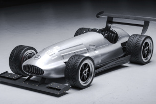 Schwer angetan vom W154 Rennwagen ist auch Francesco Artusato, Designartist aus Los Angeles, USA. Mit Hilfe der Pixelschubserei ergänzt er die legendäre Silberfpeilkarosse um neuzeitliche Reifen und Räder und ein modern anmutendes Rundum-Spoilerwerk