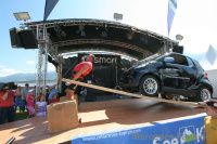 Gut gestärkt waren auch die drei Strongman, die sich es zur Aufgabe gemacht haben einen Smart anzuheben. Um das ganze noch etwas schwerer zu gestalten, nahmen am Ende noch drei weitere Personen im Smart Platz und steigerten das Gewicht auf über 1000 Kilogramm.