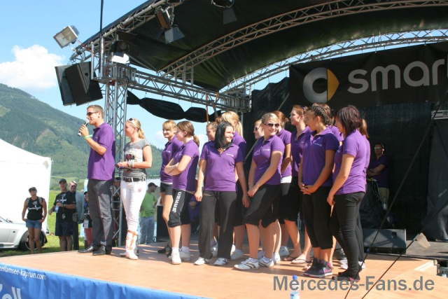 Zeit zum abkühlen hatten die Besucher kaum. Denn schon stand ein neuer Smart-Weltrekord an, der es in das Guinnessbuch der Rekorde schaffen sollte. Sage und schreibe 16 Mädels einer Cheerleader-Mannschaft wollten in einem Smart-fortwo platznehmen und anschließend noch ein paar Meter damit fahren.