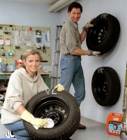 Bei der Abnahme der Winterräder nicht vergessen, die Position am Fahrzeug auf den Rädern zu vermerken. Bei dieser Gelegenheit kann man praktischerweise gleich den Zustand der Scheibenbremsen unter die Lupe nehmen. Vor dem Einlagern den Reifendruck um 0,5 bar erhöhen. Die Winterräder auf Felge sollen lichtgeschützt, trocken und kühl entweder liegend und gestapelt oder an der Felge an der Wand aufgehängt aufbewahrt werden. Sind die Sommerräder drauf, als erstes den Reifendruck an der Tankstelle kontrollieren, dabei das Ersatzrad nicht vergessen!