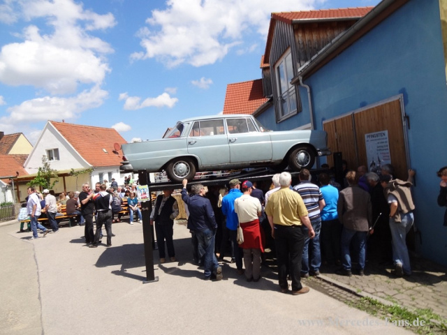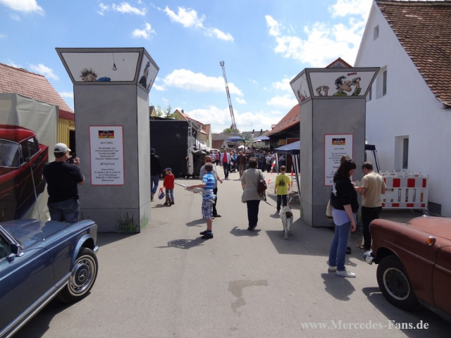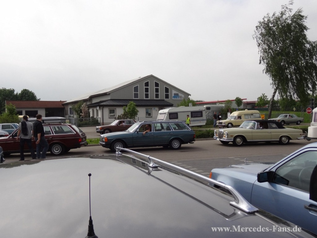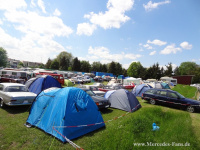 Das Treffen beginnt für die meisten Teilnehmer mit einem Stau, denn bevor der Ort in Franken von Mercedes-Jüngern aus allen Regionen der Republik übernommen wird, müssen die verschiedenen Areale vorbereitet und freigegeben sein. Doch so ein Stau mit anderen schönen Fahrzeugen wird meist schon für erste Gespräche genutzt und so vergeht die Zeit recht schnell. Viele der Teilnehmer kommen bereits seit Jahren und versuchen ihren angestammten Platz zu ergattern. Das kleine Chaos der ersten Minuten nach Schlagbaumöffnung ist allerdings schon nach einer halben Stunde vergessen.