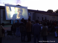 Wem mehr nach etwas Ruhe war, der konnte im Freilichtkino von KinoKultur Rosenheim e.V. bei Popcorn oder Nachos den Film >Russendisko< genießen. Einer der Hauptdarsteller im Film war passenderweise ein leicht ranziger Mercedes /8, in dem legendären Strich8 erkunden die drei jungen Russen Wladimir (Matthias Schweighöfer), Mischa (Friedrich Mücke) und Andrej (Christian Friedel) im Sommer 1990 den goldenen Westen in Berlin. Mit wenig Geld, aber umso mehr Elan und Lebenslust wollen sie ihre Lebensträume erfüllen. Verkaufsstand, Fluchtfahrzeug, Unterkunft all dies bewältigt das Kultauto mit Bravour und wird damit zu einem Hauptdarsteller des Films.