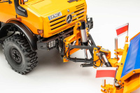 Komponenten wie Portalachsen mit Differenzialsperren oder das einzigartige Rahmenkonzept im kleinen Maßstab haben wir originalgetreu realisiert. Darüber hinaus kann man den Unimog mit einer voll funktionsfähigen Hydraulik ausstatten, die einen Arbeitsdruck von ca. 20 bar (!) generiert. Darüber hinaus ist für das ScaleART-Unimog-Modell eine komplette Lichtanlage mit zusätzlichen Beleuchtungskomponenten, wie z.B. Rundumleuchten, Arbeitsscheinwerfern und anderem mehr verfügbar.
