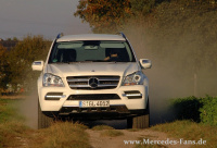 Eins ist der GL natürlich im Leben nicht, ein Nachfolger der G-Klasse, obwohl er in der Presse dafür gehandelt wurde. Zwar bietet er eine ordentliche Geländeperformance, aber der GL fühlt sich auf Pisten und auf der Straße wesentlich wohler als Off Road. Verschafft man dem Auto durch Hochstellen des Luftfahrwerks Bodenfreiheit fürs Geländefahren ist die Federwirkung so drastisch eingeschränkt, dass man nur langsam durchs Gelände hoppeln kann.