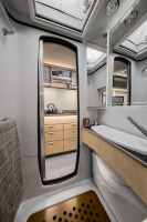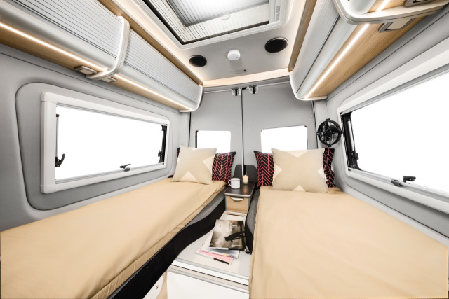 Angetrieben wird das Fahrzeug von einem sechszylindrigen Turbodiesel mit drei Litern Hubraum, der an eine siebengängige Automatik gekoppelt ist. Mit Treibstoff wird das Antriebsaggregat aus einem 100 Liter fassenden Kraftstofftank versorgt. Im Fahrerhaus gibt es zwei drehbare Komfort-Sitze mit verstellbaren Armlehnen, dazu einen faltbaren Kaffeetisch. Vier Sitze sind optional realisierbar. Für Unterhaltung sorgt eine 48 cm große TV-DVD-Kombination, angebracht am Frontende der Küche und höhenverstellbar sowie auch nach draußen schwenkbar. Genutzt werden kann die Kombi auch im Schlafraum, der im Heck untergebracht ist. Dort gibt es zwei 205 Zentimeter lange Einzelbetten, die auch zu einem großen Doppelbett verbunden werden können.