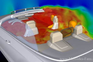 Im Rahmen einer so genannten Produktklinik der Mercedes-Marktforschung konnten Cabriofahrer das neue System bereits an Prototypen ausprobieren und haben es enthusiastisch begrüßt. Denn auf Wunsch können über die zentrale Bedieneinheit nicht nur die AIRCAP-Funktionen gesteuert, sondern mit einem Knopfdruck auch alle vier Seitenscheiben gleichzeitig versenkt werden. Andererseits hat der Fahrer die Möglichkeit, das AIRCAP-System bis zu einer Geschwindigkeit von 160 km/h auszufahren. Genutzt werden kann es bis zur Höchstgeschwindigkeit. Praktisch und sicher: Das Windabweiser-Modul ist außerdem in die PRE-SAFE-Funktionen des E‑Klasse-Cabrios integriert. Wird ein bevorstehender Unfall erkannt, verschwindet AIRCAP im Scheibenrahmen.