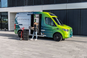 Die Mercedes-Ingenieure haben einen eSprinter zum Technologieträger aufgerüstet. Der Sustaineer bietet eine bunte Mischung vom Feinstaubsauger bis zu beheizten Sicherheitsgurten.