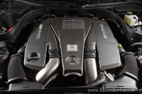 wei neben den Zylinderbänken angebrachte Abgasturbolader versorgen die acht Zylinder mit Frischluft. Bei einer Maximaldrehzahl von 185.000 Umdrehungen pressen beide Turbolader bei Volllast 1750 kg Luft pro Stunde in die Brennräume. Der maximale Ladedruck beträgt 1,0 bar, in Verbindung mit dem AMG Performance Package 1,3 bar. Durch ihre spezielle und kompakte Bauform die Turbinengehäuse sind mit dem Abgaskrümmer verschweißt ergeben sich nicht nur deutliche Platzvorteile, dies begünstigt auch das Aufheizen der Katalysatoren.