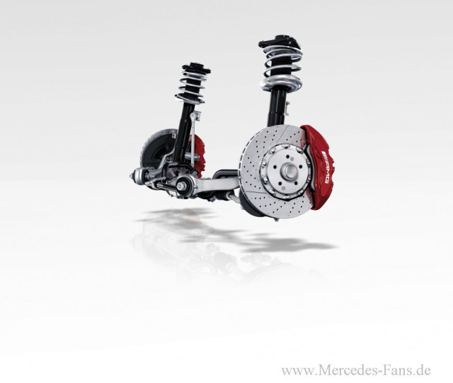 Ein weiterer Beleg für das aufwendig neu konzipierte AMG RIDE CONTROL Sportfahrwerk sind die hochwertigen, vielfach aus Aluminium gefertigten Achskomponenten. Neue Achsschenkel, Querlenker, Zugstrebenlager sowie Kopflager an der Vorderachse garantieren mehr Stabilität und einen besseren Fahrbahnkontakt. Ein gewichtsoptimierter und dickerer Rohrstabilisator reduziert die Seitenneigung in schnell gefahrenen Wechselkurven.