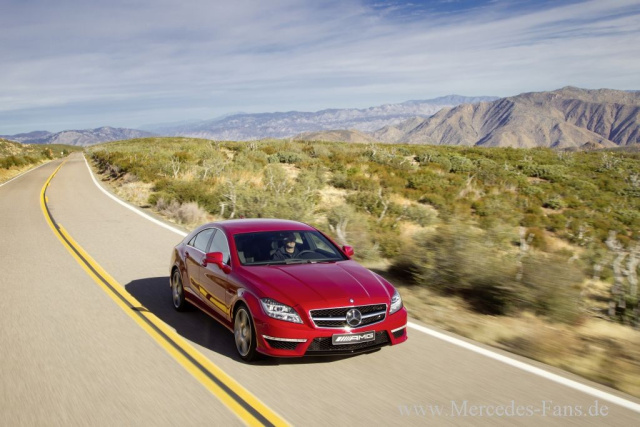 Für den CLS 63 AMG haben die AMG Ingenieure ein neues AMG RIDE CONTROL-Sportfahrwerk entwickelt, das sich durch höchste Variabilität auszeichnet. An der Vorderachse kommt eine Stahlfederung zum Einsatz, an der Hinterachse ein voll tragendes Luftfedersystem. Diese Lösung garantiert ein feinfühliges Ansprechverhalten der Federung vorne, während die Fahrzeughöhe hinten dank automatischer Niveauregulierung stets konstant bleibt unabhängig von der Beladung. Von den anderen CLS-Varianten unterscheidet sich das AMG Topmodell zudem durch seine neu entwickelte Dreilenker-Vorderachse mit größerer Spurweite, sie wuchs gegenüber dem CLS 500 um 24 auf 1623 Millimeter. In Verbindung mit neuen Radträgern für mehr negativen Radsturz vorne ergibt sich ein deutliches Plus an Grip bei schneller Kurvenfahrt.