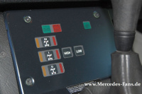Und schon erklärt sich auch das karge Interieur! Das an zahlreichen Stellen ungehinderten Blick auf die calcitweiße Lackierung freigibt. Statt Auslegeware gibt es Gummimatten, statt Edelholz-Einlagen robuste Kippschalter. Für eine unproblematische Reinigung mit dem Dampfstrahler einfach den Stöpsel im Bodenblech ziehen, das gleiche empfiehlt sich nach dem Durchwaten von Gewässern. Der G Professionell ist nämlich ein großer Pragmatiker, auf Teppiche kann er verzichten, auf eine 12 V und eine 24V Steckdose dagegen nicht. Und beim Blick auf den Lichtschalter wird schnell klar, dieser 461er ist eigentlich eine Armeeausführung, die als G-Klasse Professional ihren Zivildienst versieht. Und in dieser Eigenschaft wendet sich das G-Modell nicht nur an Unternehmen und Kommunen, die ihre Mitarbeiter im G durchs unwegsame Gelände befördern wollen, sondern natürlich auch an die Abenteurer-Naturen unter uns.