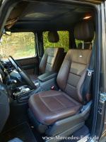 Über die generellen Kletterfähigkeiten ist auf Mercedes-Fans.de hinsichtlich der G-Klasse bereits alles gesagt worden. Das "Große 4x4" gestaltet sich dank hervorragender Eigenschaften im Grunde recht simpel. Über drei Tasten aktiviert der Fahrer die nötigen Sperren und zusätzlich den dann untersetzten Geländefahrmodus. Mit Bergabfahrt- und Halteassistenten allesamt dank neuem ESP nun an Board - verlieren auch steilste Steilstrecken ihren Schrecken, beziehungsweise sind komfortabel zu meistern. Machen sie sich über Böschungs- und Rampenwinkel keine Gedanken. Da wo Sie glauben nicht mehr rauf zu kommen, klettert der G ganz locker hoch. Aber vermutlich wird speziell der AMG nur höchst selten auf diese harte Probe gestellt. Doch seien Sie versichert, er kommt weiter als es ihm die Majorität seiner Piloten antun möchte. Der G63 ist für normale Geländefahrten deutlich überqualifiziert.