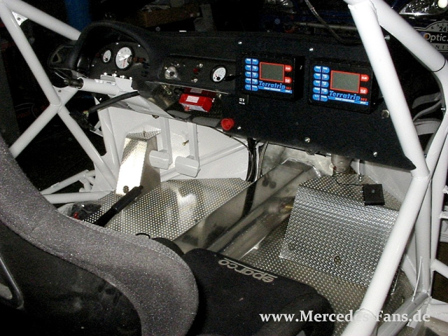 Sehr aufgeräumt und geschäftsmäßig schaut das Interieur in dem Mercedes ML rallye Buggy der Prototypenklasse T1 aus.
