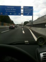 Richtung Bochum ist die A40 frei und in Teilabschnitten sogar für 100 km/h freigegeben. Tempo 80 erreicht der smart auf der Beschleunigungsspur ziemlich flott, ein Einfädeln in den Verkehr gelingt ohne Probleme. Der Anlauf auf die Höchstgeschwindigkeit von 100 km/h braucht ein bisschen Zeit. Und kostet Energie. Das rechte Rundinstrument wandert mal schnell in den dunkelorangefarbenen Bereich, die Kapazitätsanzeige sinkt deutlich unter die 80%. Es hilft nichts, da müssen wir jetzt durch. Autobahnfahren mit Höchstgeschwindigkeit ist auch für einen Elektromotor energieraubend. Und während wir so mit 100 km/h dahin-rasen stelle ich mir die Frage, kann man einen Elektromotor zum Beispiel bergab eigentlich überdrehen?